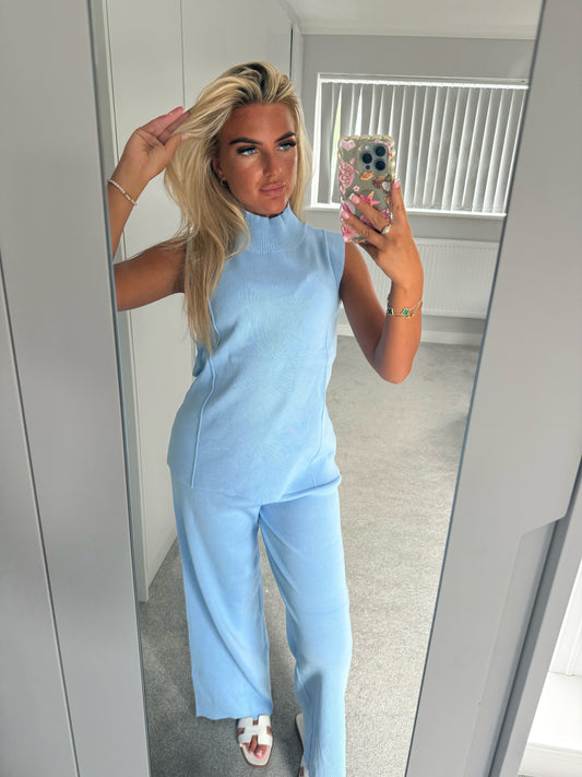 SATIN BACKLESS SHORT SET - BLUE